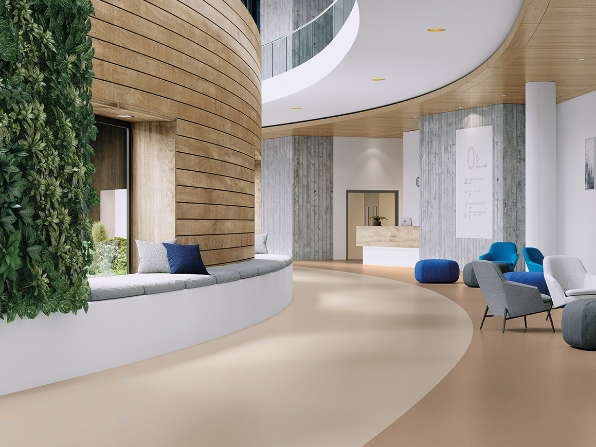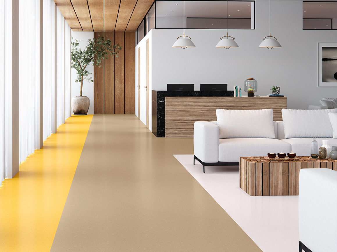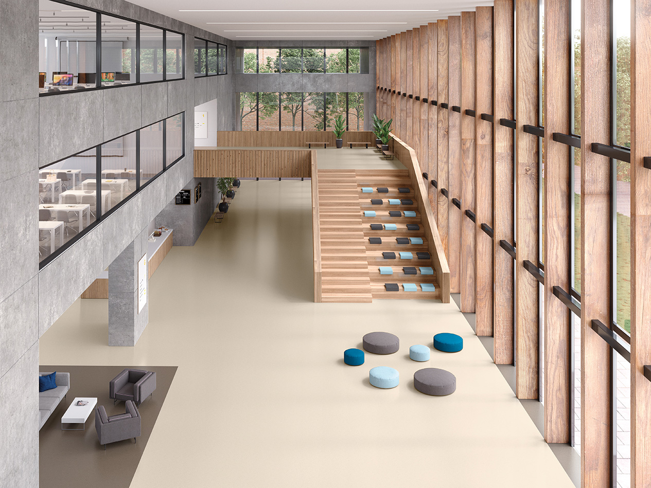Palettone är ett slitstarkt homogent vinylgolv med en lugn och balanserad mönsterbild som passar många typer av offentliga miljöer. Kollektionen finns i ett brett färgspektrum – från mjuka, naturliga toner till mer färgstarka alternativ – vilket ger stor frihet i inredningen. Golvet är utvecklat för att klara hög trafik och passar därför utmärkt i exempelvis skolor, vårdmiljöer och kommersiella lokaler. Den genomfärgade konstruktionen ger lång livslängd och gör golvet lätt att underhålla. Kan kombineras med ESD-golvet
