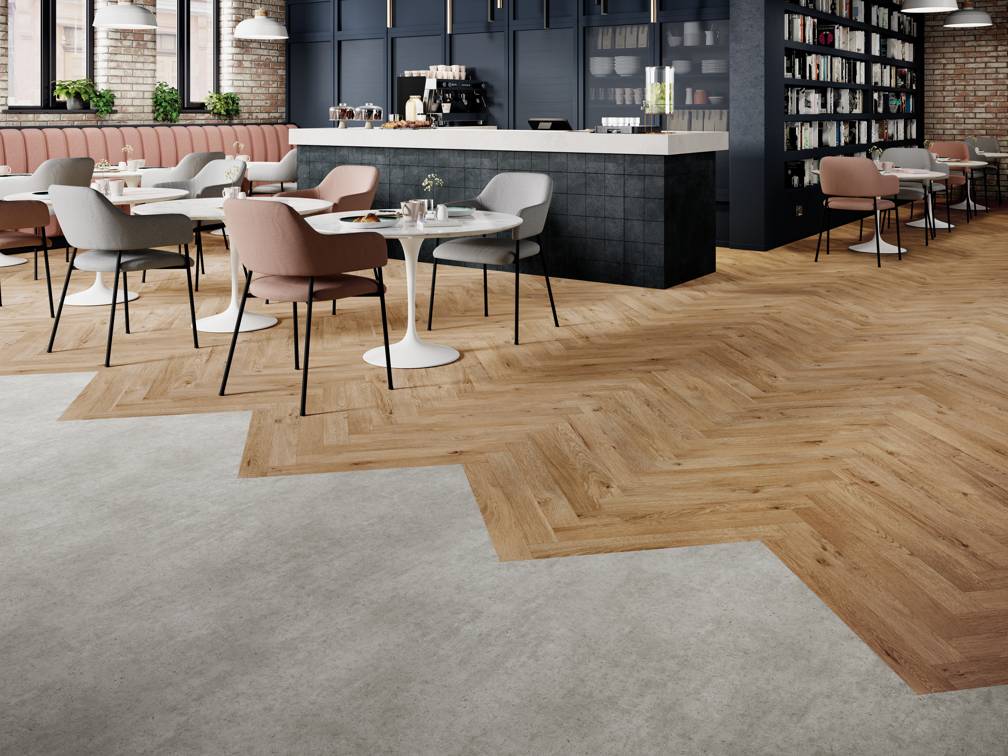 Expona Flow kan användas inom offentliga miljöer såsom skolor, butiker och restauranger.
