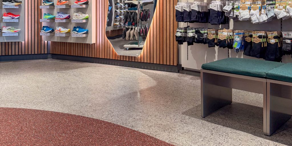 Löplabbet är en specialbutik för löpare, känd för noggranna analyser och personlig vägledning. Till konceptet har man valt ett LVT-golv från Expona Commercial. En ljus
